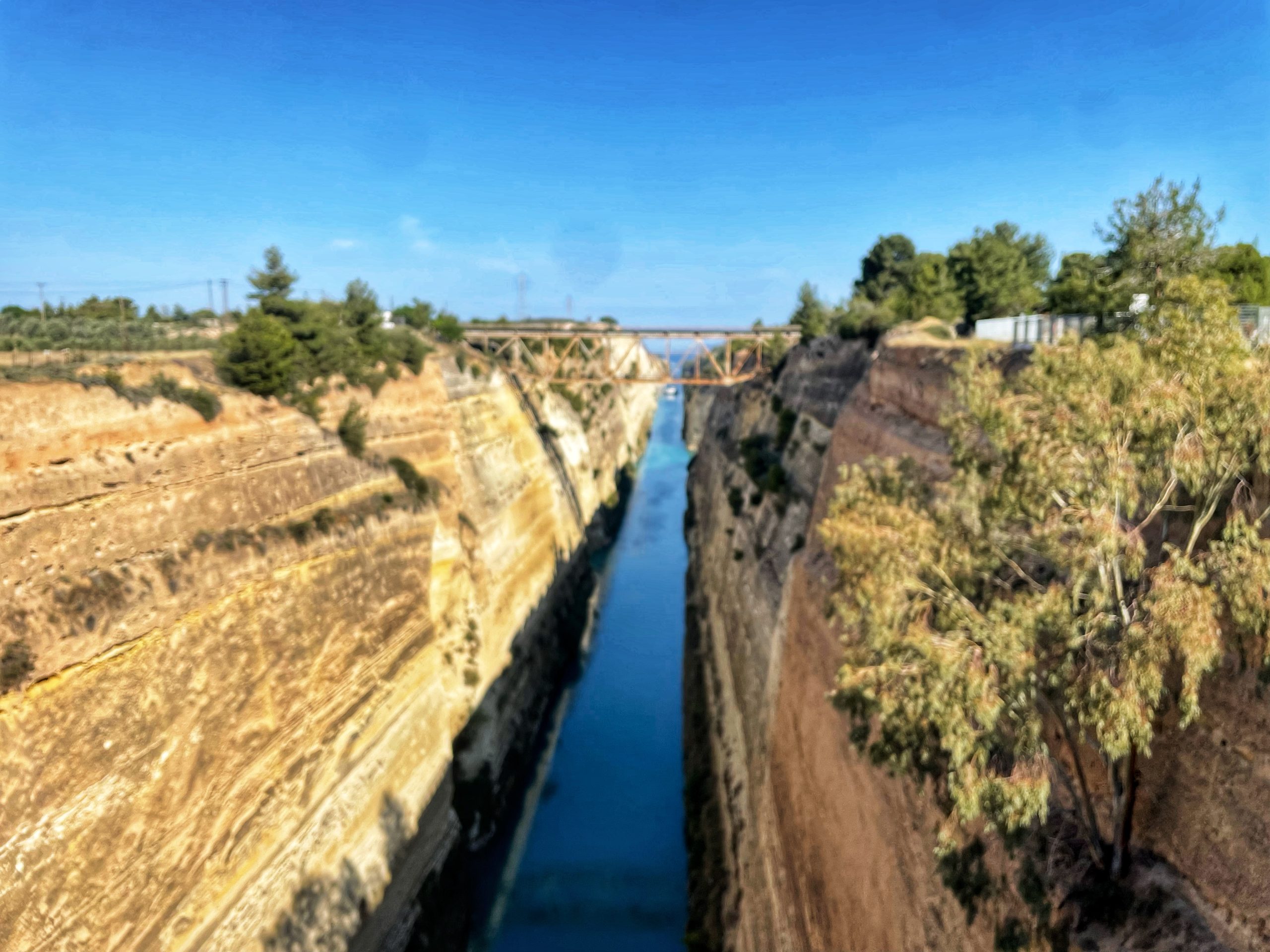 This morning we left Corinth by crossing its famous canal by foot, then headed south through the middle of orange grove territory.